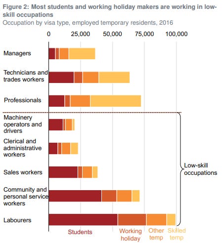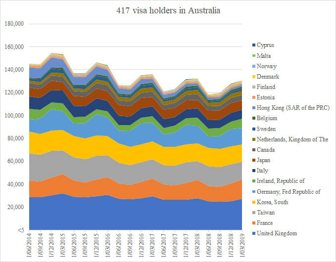 It’s a compelling immigration debate, particularly given the popularity of the backpacker visa has been waning. Interest from backpackers from the UK, Taiwan, South Korea and Hong Kong on the 417 has dropped considerably in the past five years.