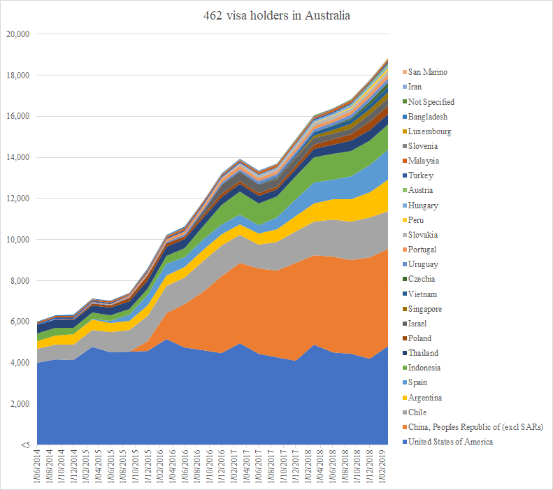 One month ago, significant changes were made to the backpacker visa subclasses 417 (think UK, French and some Asian backpackers) and 462 (more developing nations, capped in number). More countries were added and a third year of work was made available to visa holders.